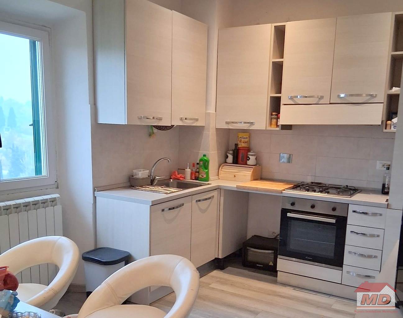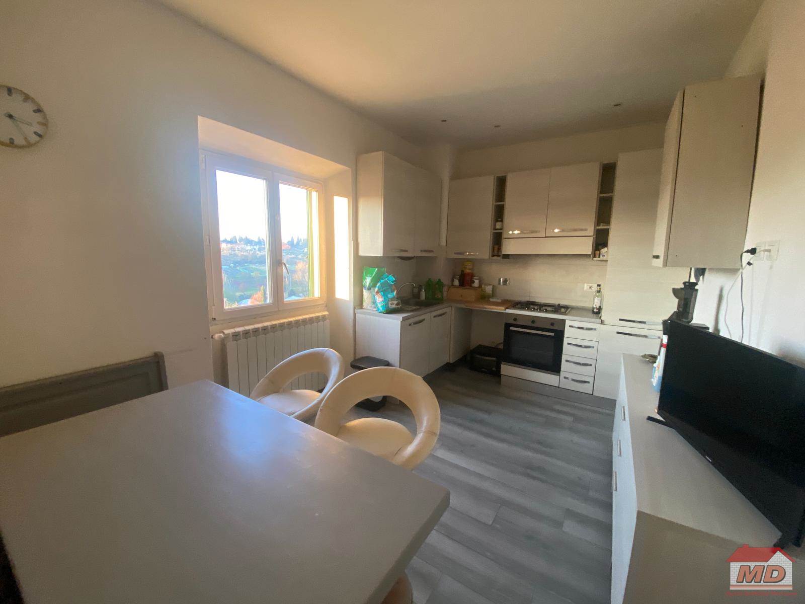 Firenze zona Galluzzo - Trilocale al quarto piano senza ascensore, completamente ristrutturato e composto da ingresso, soggiorno, cucina, camera e bagno finestrato con doccia. Tutti gli affacci risultano piacevoli con vista sulla campagna. Posto auto condominiale. Termosingolo a metano.
