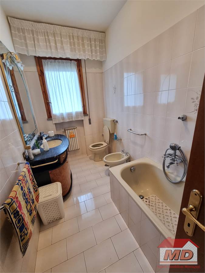 Montespertoli paese - In zona interna e tranquilla, appartamento al piano primo con ingresso indipendente da giardino privato e composto da soggiorno con terrazza, sala da pranzo con cucinotto e terrazza, disimpegno con armadio a muro uso ripostiglio, bagno finestrato e due camere di cui una con ulteriore terrazza. La proprietà comprende inoltre un comodo garage ed un posto auto.